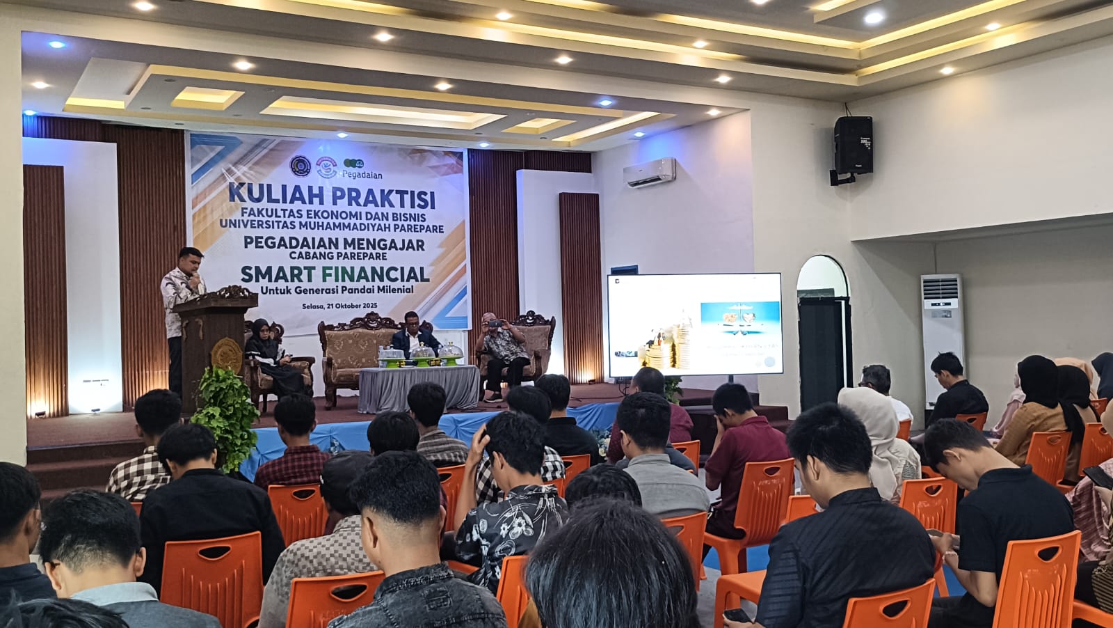 Berita Baru, Parepare – Fakultas Ekonomi dan Bisnis Universitas Muhammadiyah Parepare (FEB UM Parepare) bekerja sama dengan PT Pegadaian Cabang Parepare menggelar kuliah praktisi bertajuk “Smart Financial untuk Generasi Pandai Milenial”, Senin (21/10/2025).